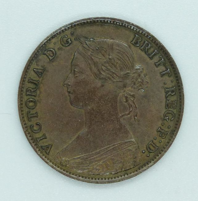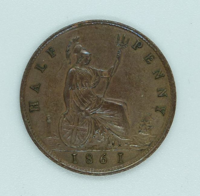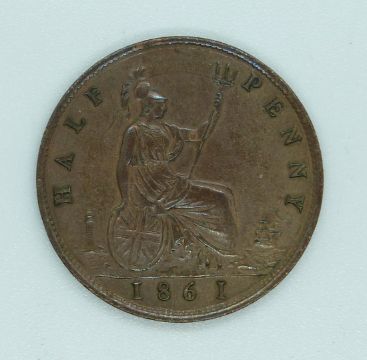 Queen Victoria 1861 halfpenny with Spink & Son receipt stating 'unknown pattern or proof for research'. Different shaped brow and defined eyebrow, laurel closer to crown, EF-unc