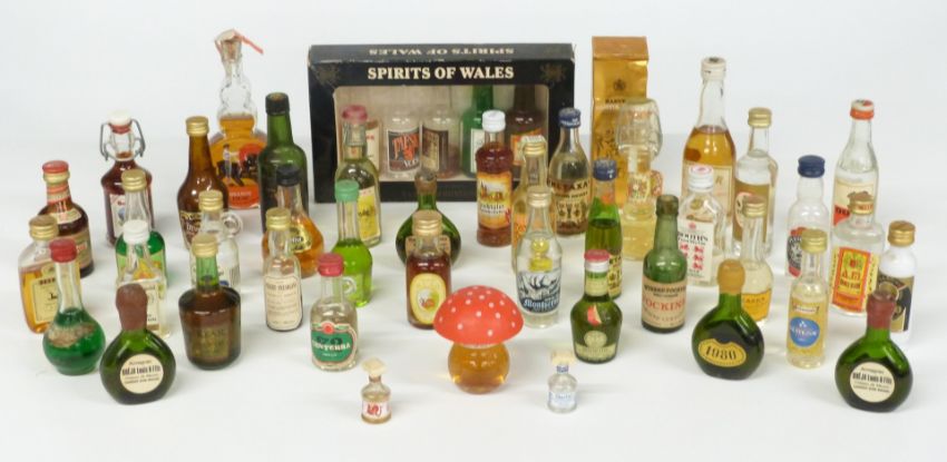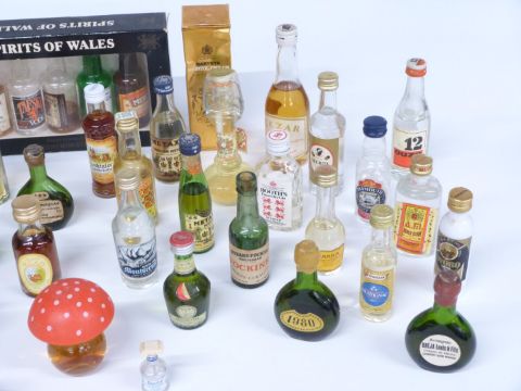 Approximately 50 alcoholic miniatures including 'Spirits of Wales' in presentation box, Irish Mist, Drambuie, Escat brandy etc