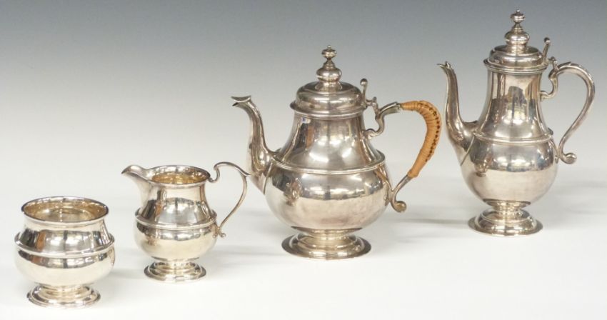 George V Mappin & Webb hallmarked silver four piece tea and coffee set, Birmingham 1913/15, height of tallest 20.5cm, weight 1330g all in