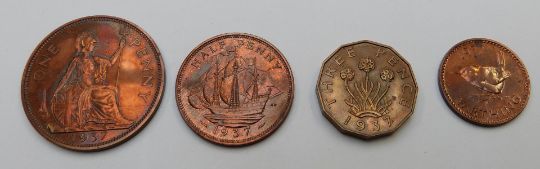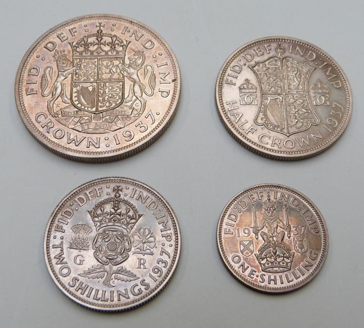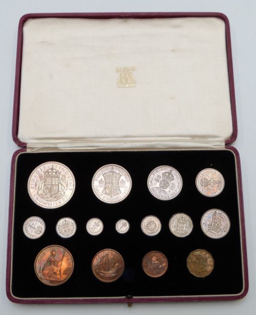 1937 specimen UK set of 15 coins for George VI, includes Maundy coins