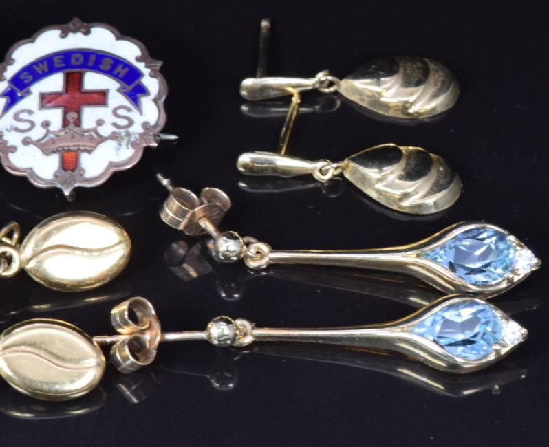 A 9ct gold ring, 9ct gold earrings and 9ct gold pendant, 7.3g