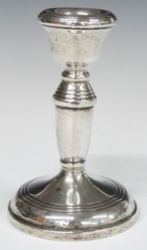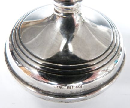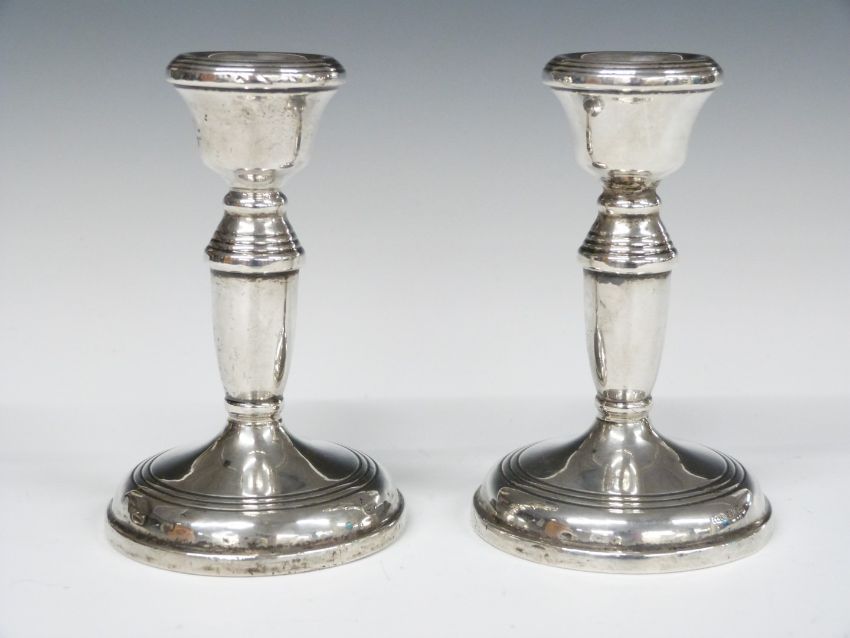 Pair of modern hallmarked silver candlesticks, Birmingham 1961, maker W I Broadway & Co, height 10cm