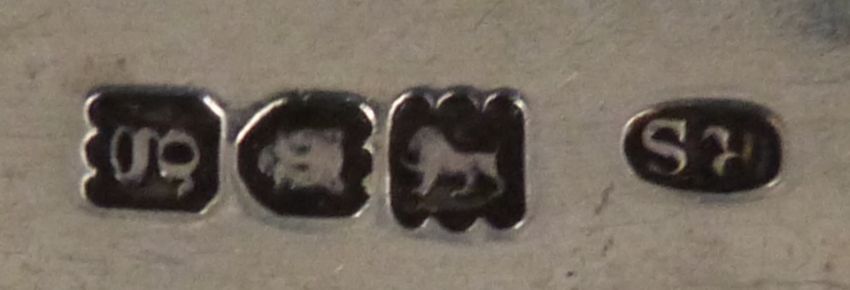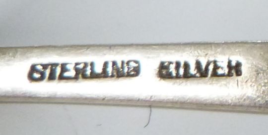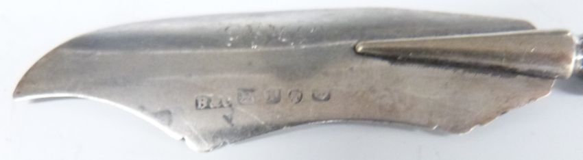 Hallmarked silver cutlery including two sets of three teaspoons, pusher and pap spoon marked sterling silver and a hallmarked silver knife blade, weight 205g