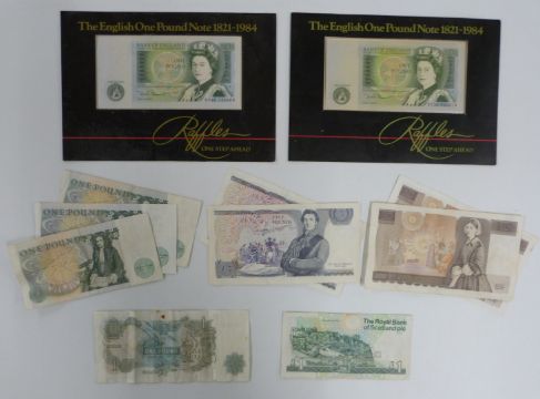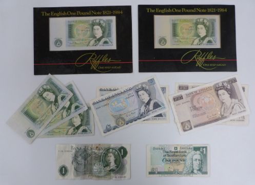 UK circulated but crisp banknotes including £10 Gills, £5 Gills, Somerset £1 notes, Page £1, a Royal Bank of Scotland example etc