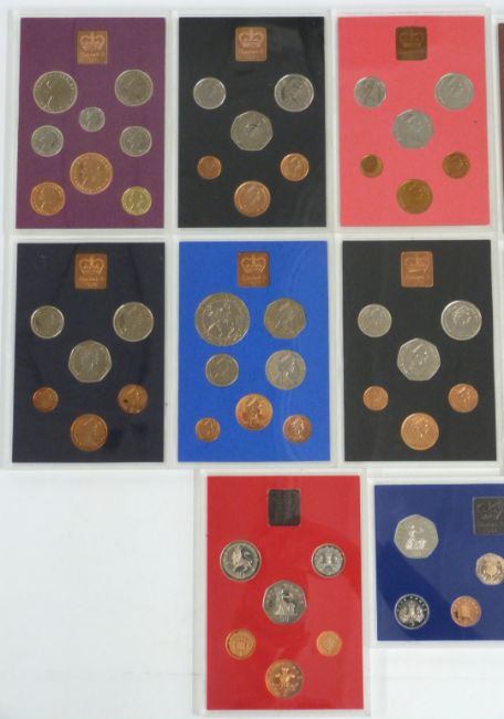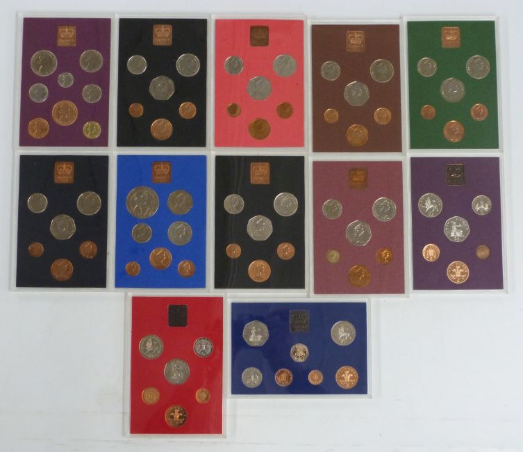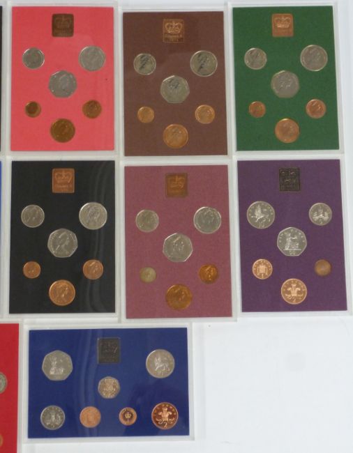 Royal Mint UK proof coinage sets 1970-1982 - missing 1972 set
