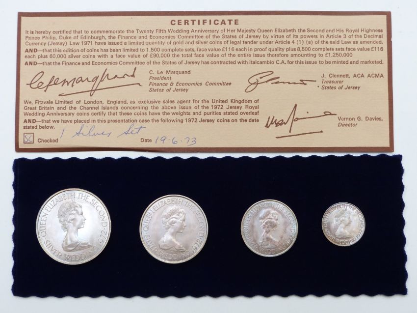 1972 silver Jersey Royal Wedding set comprising four graduated coins, in case with certificate