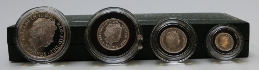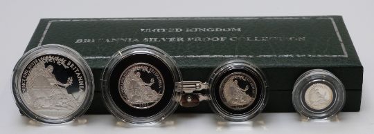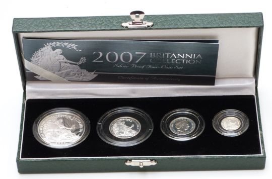 Royal Mint 2007 UK four coin silver proof Britannia set, cased with certificate