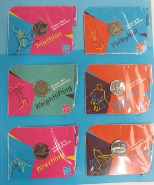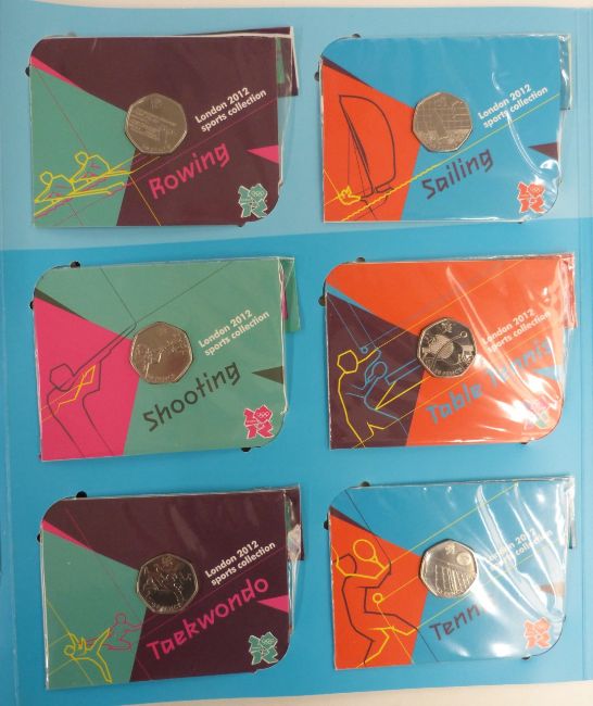 2012 London Olympic Games 50p collector's album with set of 29 coins and completion medallion