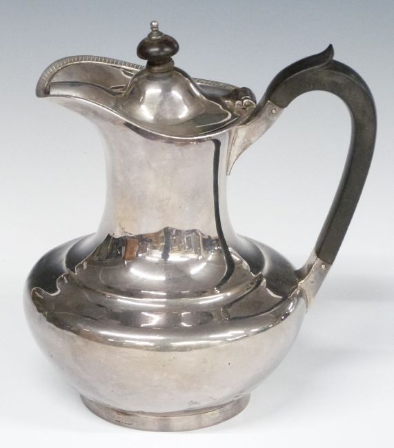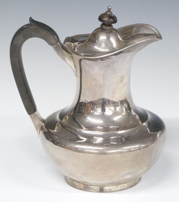 George V hallmarked silver hot water or similar jug, London 1925 maker Edward Barnard & Sons Ltd, height 19cm, weight 494g