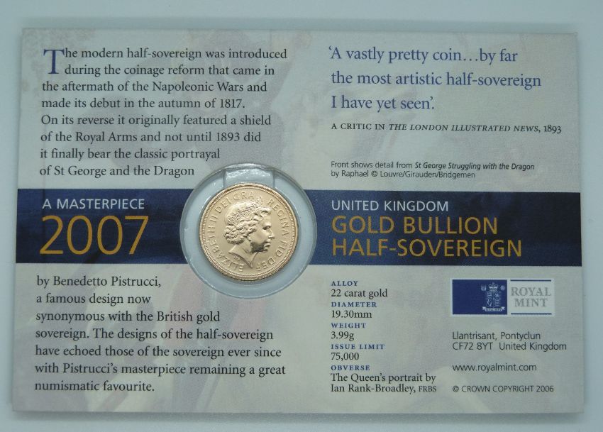 2007 gold half sovereign in Royal Mint Gold Bullion presentation pack