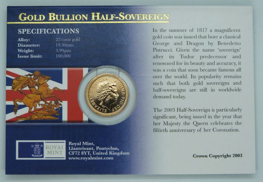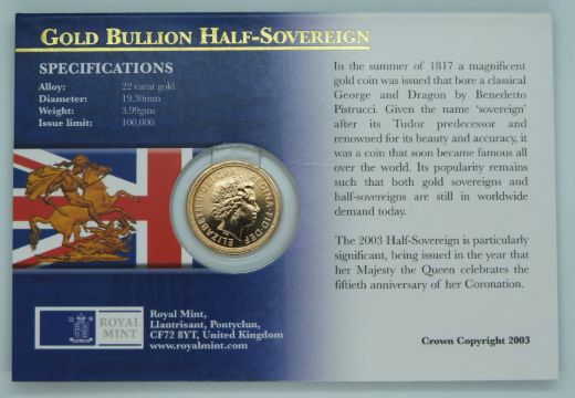 2003 gold half sovereign in Royal Mint Gold Bullion presentation pack