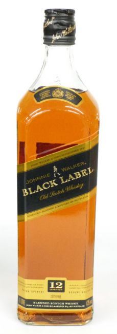 Johnnie Walker Black Label, 12 years old Blended Scotch Whisky in presentation box, 1 litre 43% vol together with a bottle of Glenmorangie Single Highland Malt Scotch Whisky in presentation tube, 350ml 40% vol
