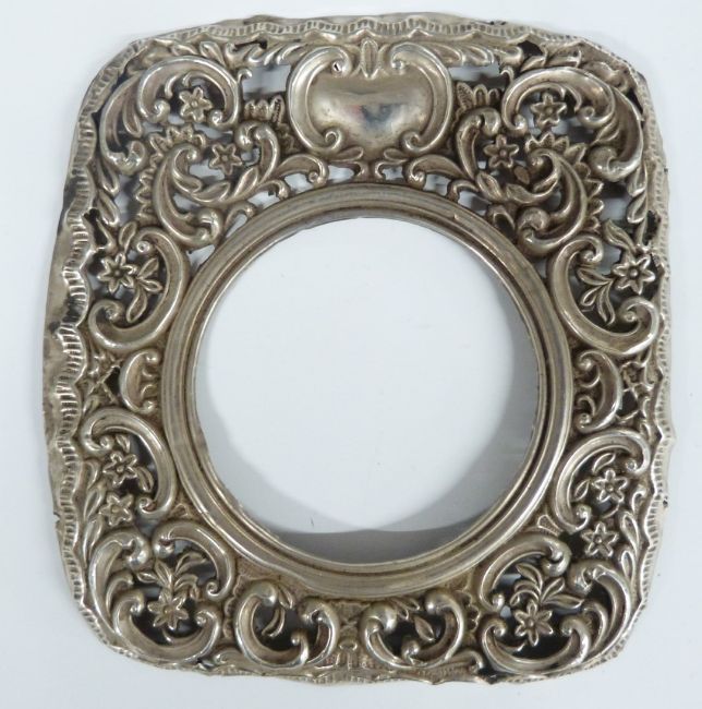 Hallmarked silver photograph frame, Sheffield 1918, height 17.5cm, together with a hallmarked silver pierced frame or similar front, height 11.5cm