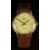 Rotary 9ct gold gentleman's wristwatch with date aperture, gold hands and baton markers, champagne dial and quartz movement, on brown leather strap, case diameter 33mm, serial number 3528.