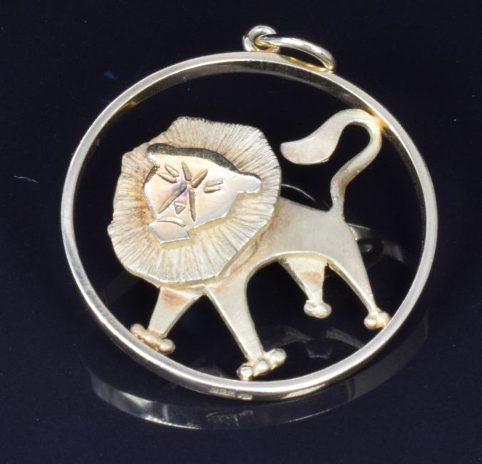 Franz Hirner 18ct gold pendant depicting a lion, 3.2cm, 13.3g