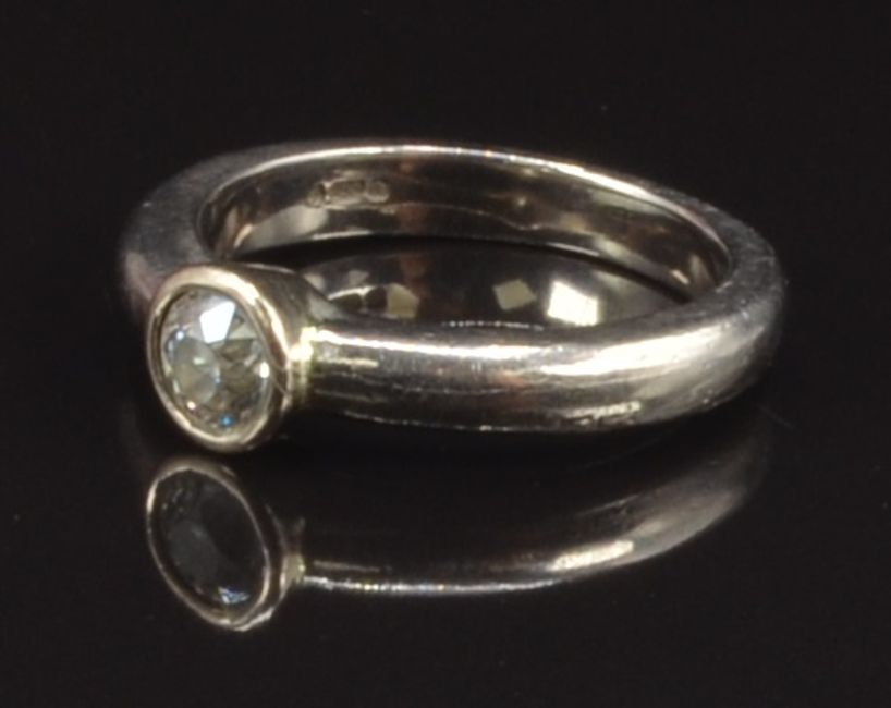 An 18ct gold ring set with a round cut diamond of approximately 0.3ct, size H, 4.8g