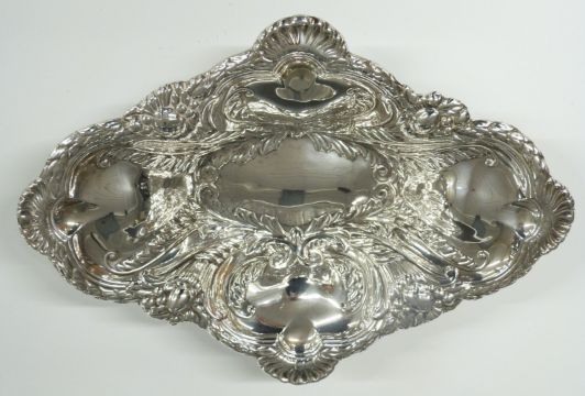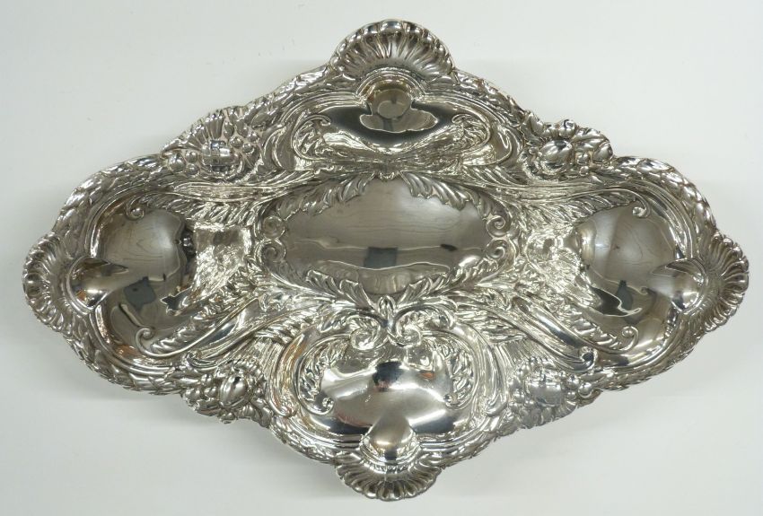 Edward VII Mappin & Webb hallmarked silver lobed and embossed bowl, London 1905, width 32cm, weight 318g