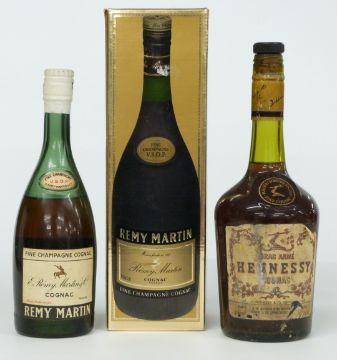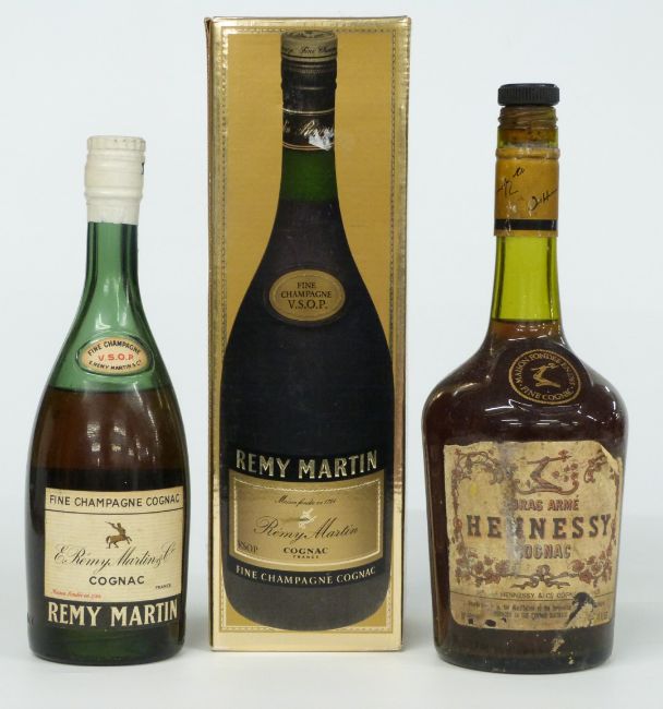 Hennessy Bras Armé Cognac 70 proof, Rémy Martin fine Champagne Cognac and a later Rémy Martin fine Champagne Cognac, in presentation box