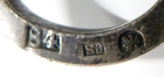 19thC Russian hallmarked silver and leather dog collar with padlock style lock. Decorated with five different protruding dogs' heads, 84 mark, c1818-1864, maker CS, diameter 15cm. Provenance: Given to the vendor's aunt, a prominent Afghan Hound breeder, who sold a dog to the Russian Czar. The collar was a present to her from the aforementioned.