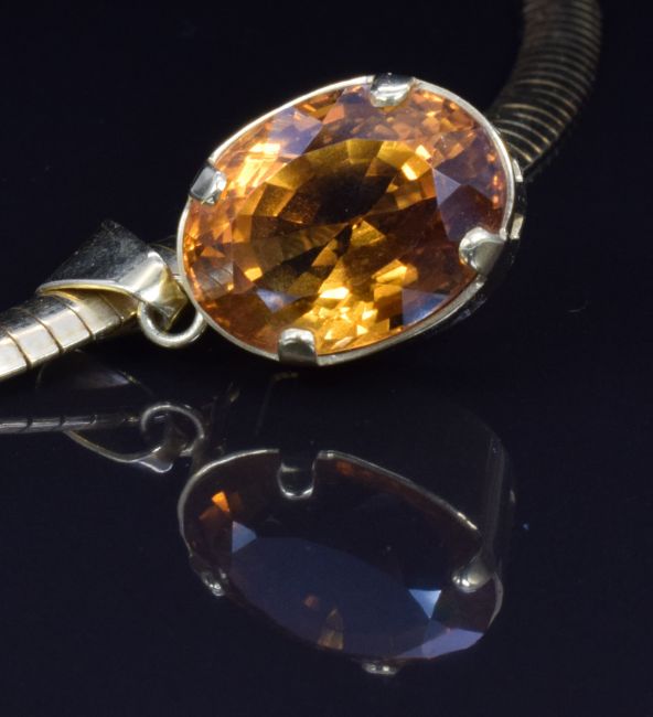 An 18ct gold snake chain/ necklace and an 18ct gold pendant set with a large oval cut citrine, 44.1g