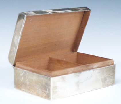 George VI Walker & Hall Art Deco hallmarked silver cigarette box, Sheffield 1937, length 14cm