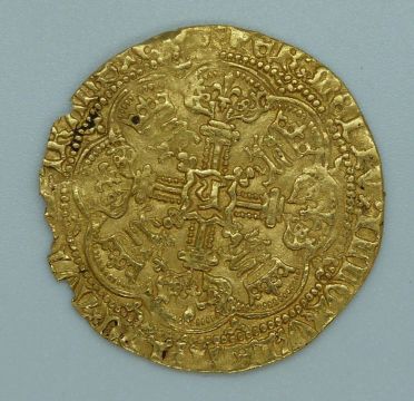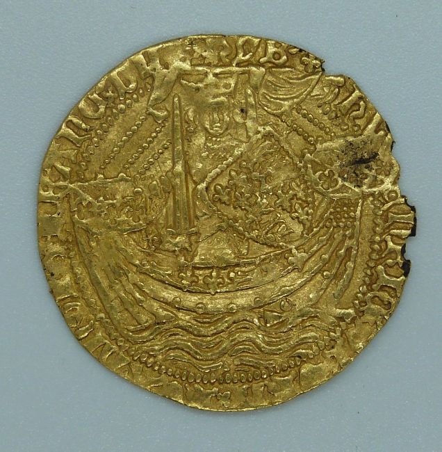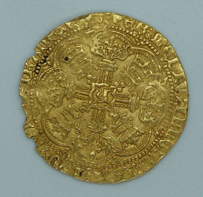 Henry V 1413-22 gold full hammered noble obv: king on ship: Henric di Gra Rex Angl 2 Franc DNS HYB. Rev: Cross with 'H' in centre: Inc Autem Transiens per Medium Illorv Ibat. Broken annulet to side of ship (Spink 1742). Cross pate mint mark for London, some clipping, legend still legible, good detail, VF, 6.9g