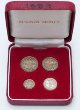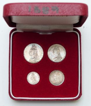 Victoria Jubilee head 1889 Maundy set, in case