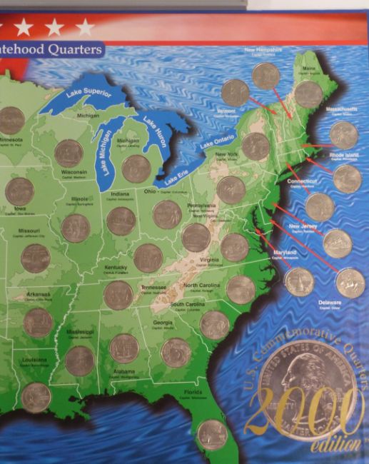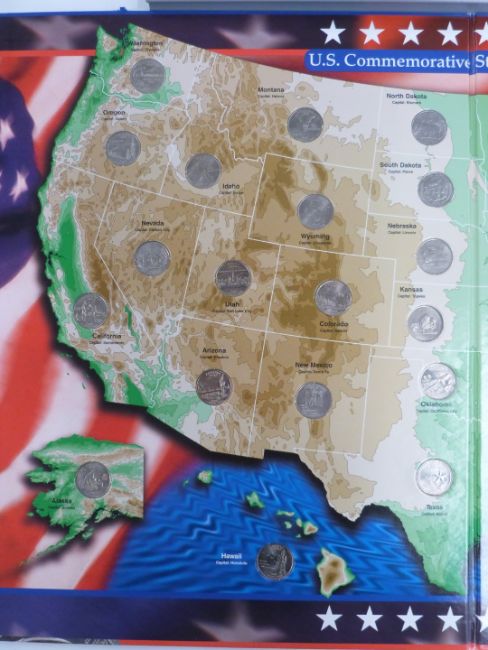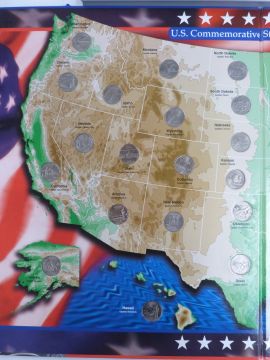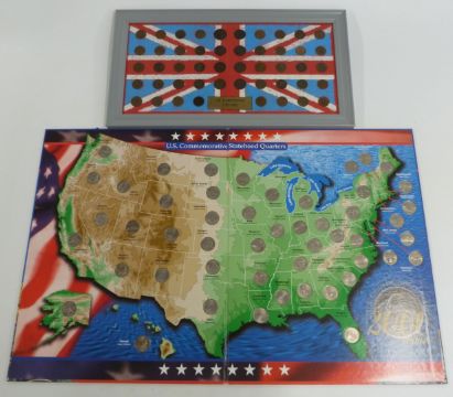 A USA commemorative quarter collection in folder, together with a framed UK farthing collection