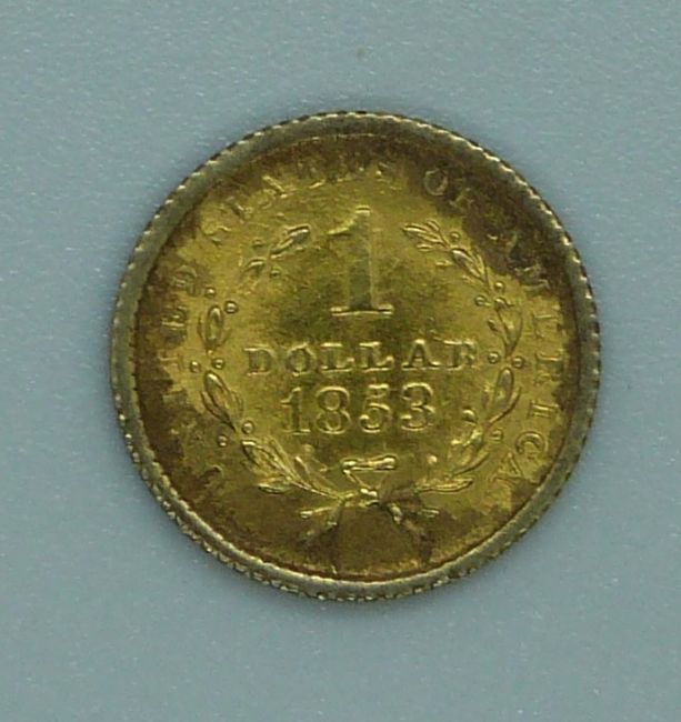 1853 gold U.S one dollar coin