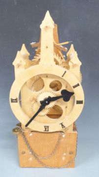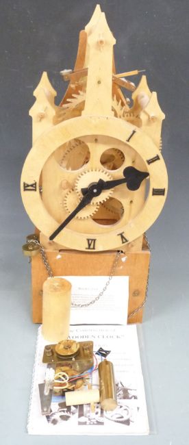 Hand built wooden wall clock with grasshopper escapement and construction book