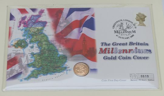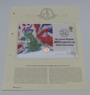2000 gold half sovereign in Westminster Coins Commemorative cover no 0619 for the Millennium