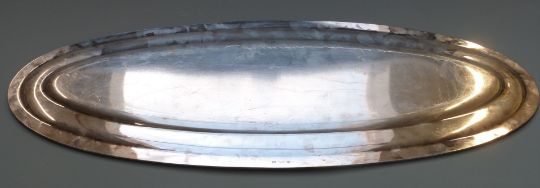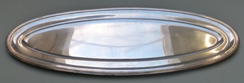 Christofle silver plated oval serving platter with beaded rim, 70 x 27cm