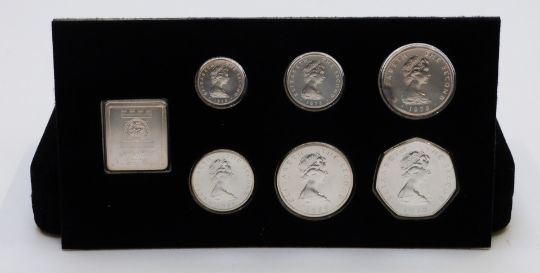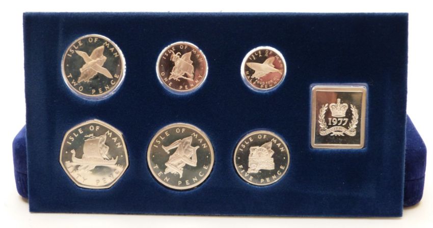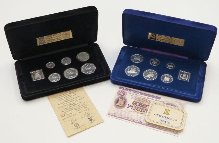 Pobjoy Mint two silver proof Isle of Man coin sets, 1977 and 1978, both in plush case with certificates