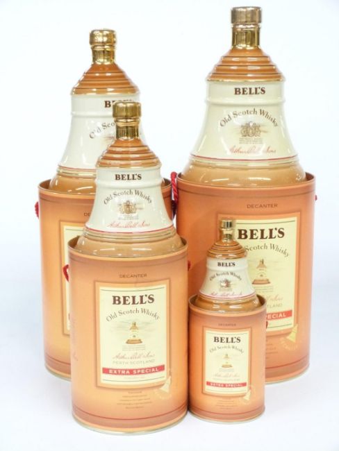 Seven Bell's whisky decanters in original boxes including 12 years aged, commemorative, wedding etc, 75cl 40%
