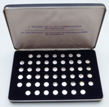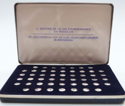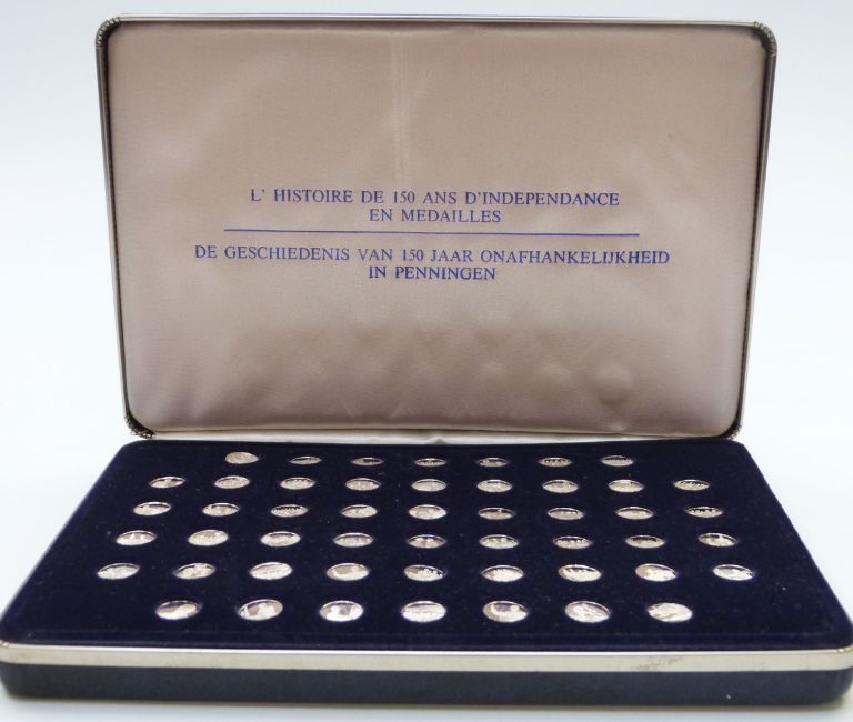 A set of silver coins / medallions to commemorate 150 years of Independence
