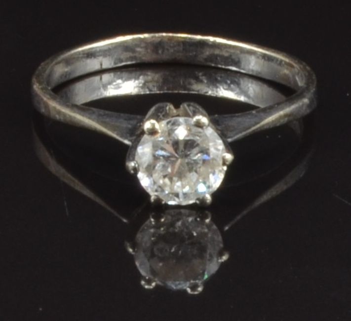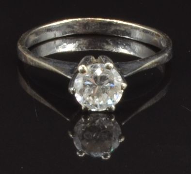 An 18ct white gold ring set with a round cut diamond of approximately 0.7ct, size Q, 2.9g