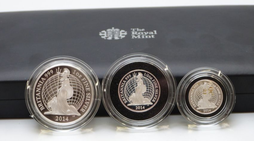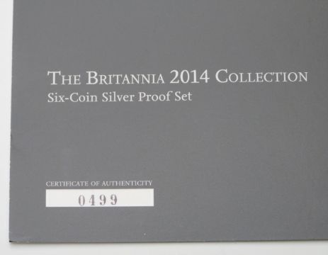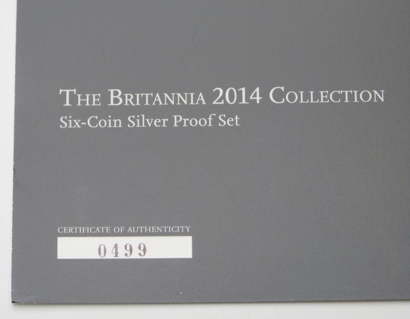 Royal Mint 2014 UK six coin silver proof Britannia set, cased with certificate