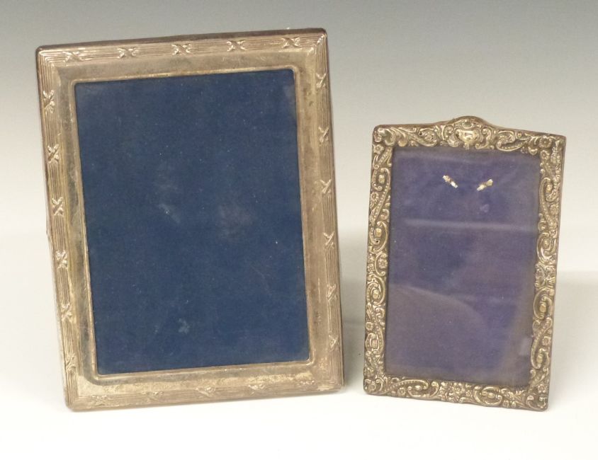 Two hallmarked silver photograph frames the larger to suit 7 x 5 inch photo, both with easel backs