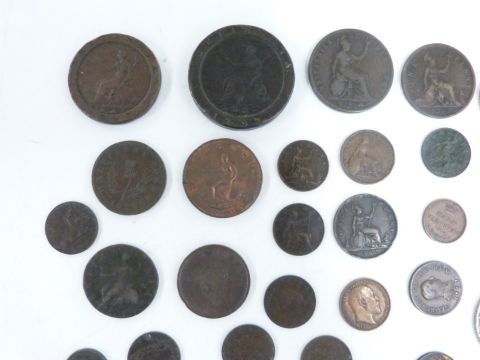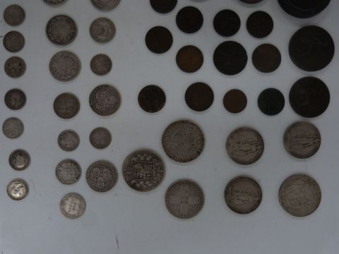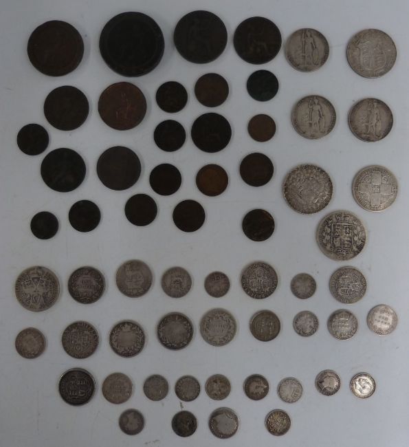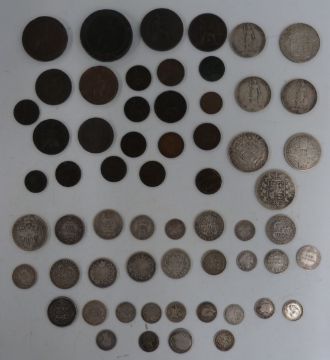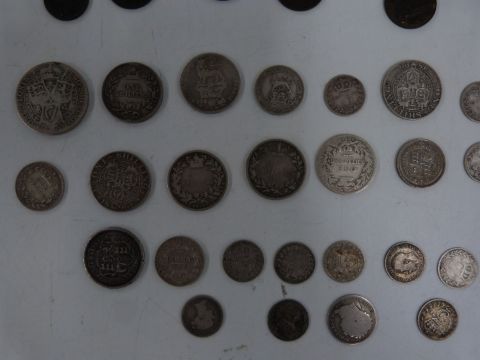 A collection of Georgian, Victorian and Edwardian silver coinage, approximately 181g together with a collection of Georgian, Victorian and Edwardian copper and bronze coins to include half farthings, a 1799 farthing with some lustre, Nova Scotia halfpenny 1823, George II halfpenny etc