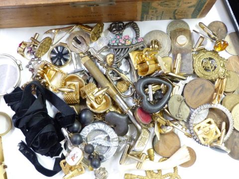 A collection of jewellery including 14k gold ring, silver fob, silver Herefordshire football fob, cufflinks, watches, silver ring, etc