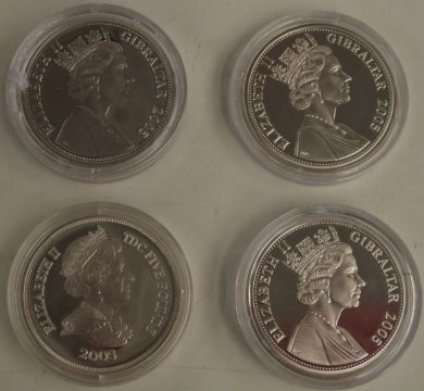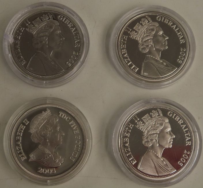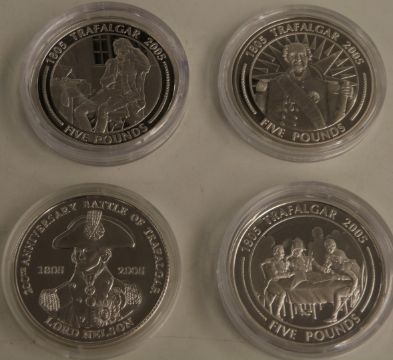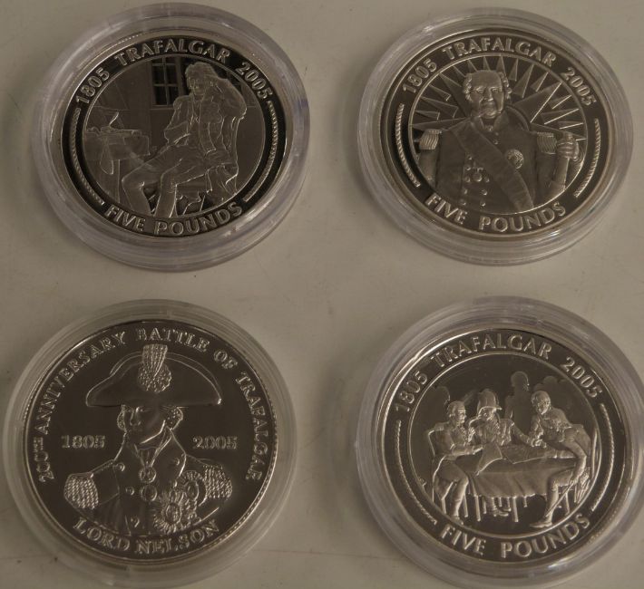 Four silver Battle of Trafalgar 1805-2005 commemorative crowns