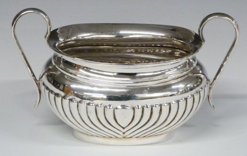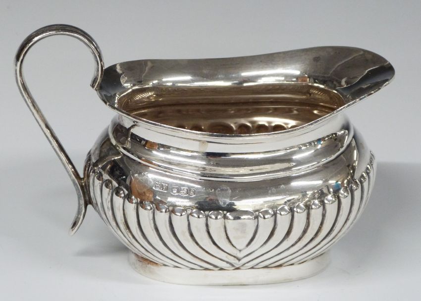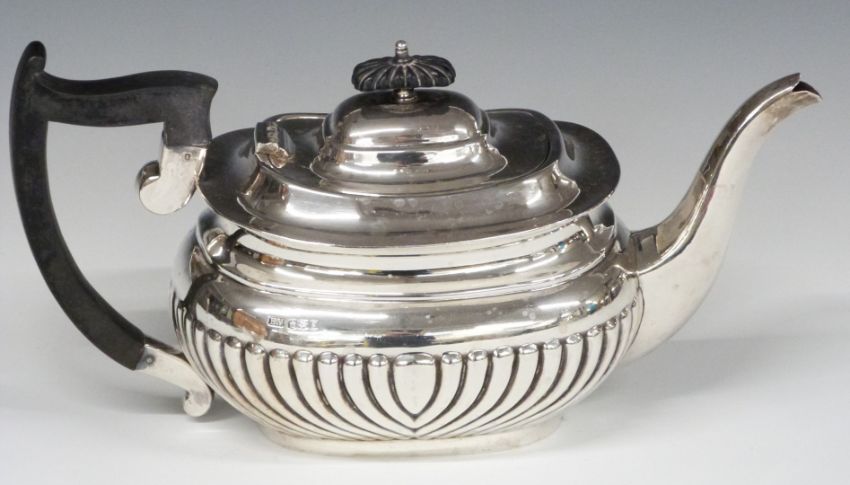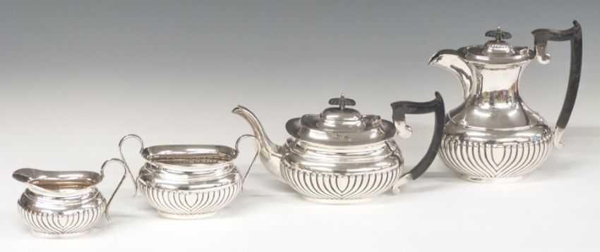 George V hallmarked silver four piece teaset with lobed lower bodies, Sheffield 1924, maker Viner's Ltd, length of teapot 29cm, weight 1921g all in