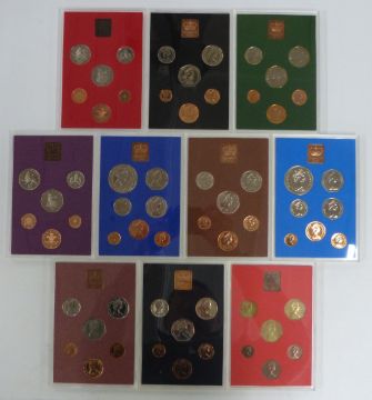Ten Royal Mint coinage of Great Britain and Northern Ireland proof sets 1972-1981