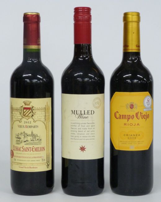 Eight bottles of red wine, port and sherry including Lussac Saint Emilion Vieux Remparts 2012 750ml, 13% vol, Campo Viejo Rioja Crianza 2008 750ml 13.5% vol, Cockburn's Special Reserve Port 750ml 20% vol etc