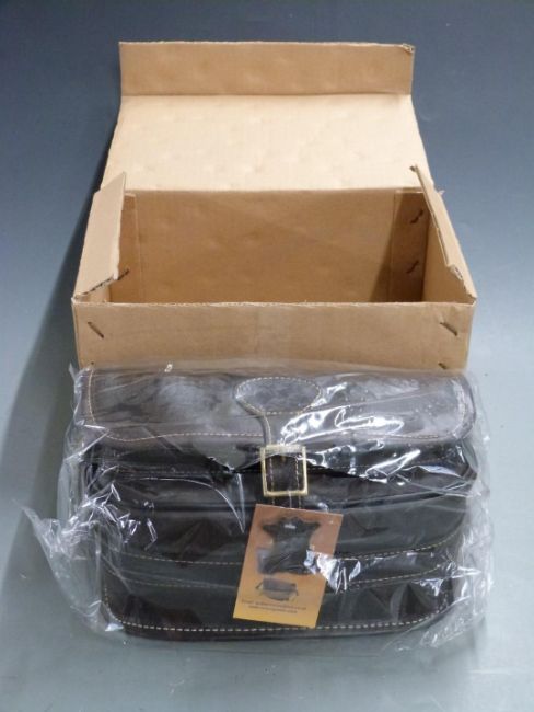 Brown leather shotgun cartridge loaders bag, new in original box and packaging.