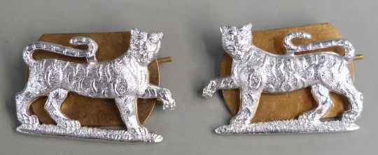Eight British Army Gordon Highlanders, West Yorkshire Regiment and Lancashire Fusiliers metal collar badges in two pairs plus four
