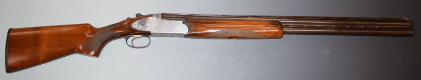 Rizzini 12 bore over and under ejector shotgun with engraved scenes of birds to the sidelock plates and underside, engraved trigger guard, top plate and thumb lever, chequered semi-pistol grip and forend, single selective trigger, vented top and central ribs and 27 inch multi choke barrels, overall length 113cm, length of pull 35cm, serial number 51152. PLEASE NOTE THAT A VALID RELEVANT FIREARMS/SHOTGUN CERTIFICATE IS REQUIRED TO HANDLE/PURCHASE THIS ITEM.