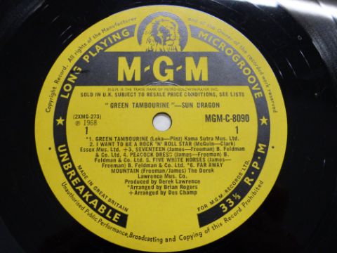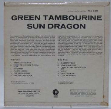 Sun Dragon - Green Tambourine (MGMC8090) record appears Ex less radical marks side 1 track 4 and soft scuffs, cover VG