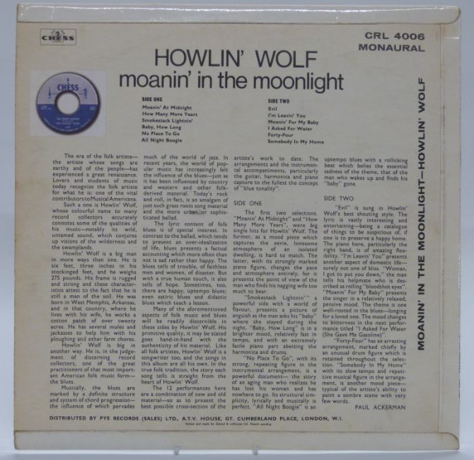Howlin' Wolf - Moanin' In The Moonlight (CRL4006) record appears at least Good, cover better