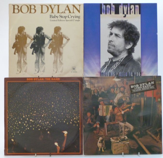Bob Dylan, 31 albums including Bob Dylan, Freewheelin', Times, Bringing It All Home, Blonde, John Wesley Harding, Nashville Skyline, Portrait, New Morning, Pat Garrett, Dylan, Planet Waves, Blood, Desire, Street Legal, Slow Train, Saved, Shot Of Love, InFidels, Knocked, Empire Burlesque, Mercy, Before The Flood, Basement, Groove, Good As, Budokan, Hits, More Hits plus Baby Stop Crying twelve inch